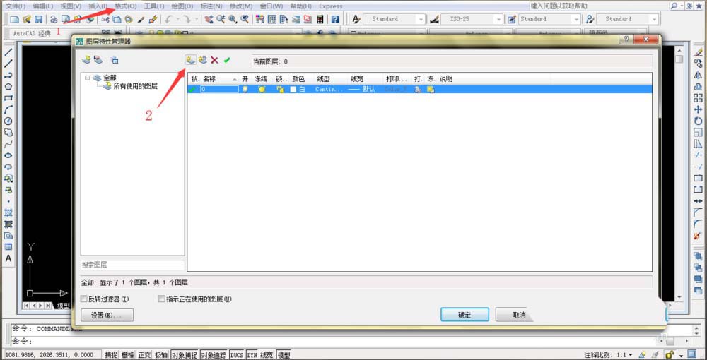 選擇“格式”|“圖層”命令,使用打開的“圖層特性管理器”對話框創建一個獨立的圖層,用于尺寸標注。