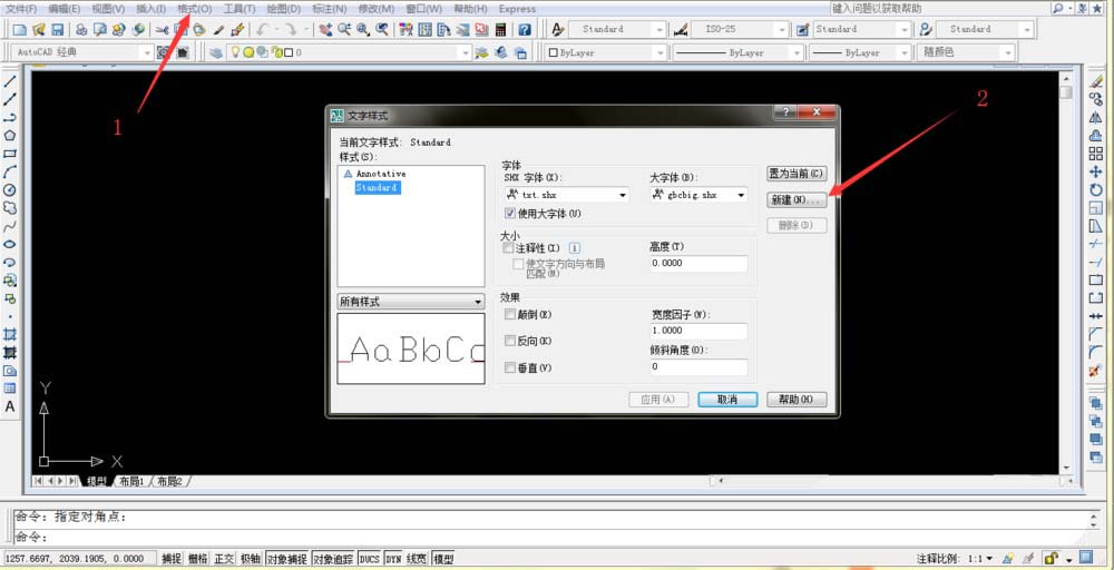 選擇“格式”|“文字樣式”命令,使用打開的“文字樣式”對話框創建一種文字樣式,用于尺寸標注。