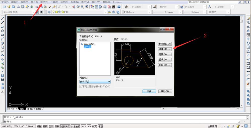 選擇“格式”|“標注樣式”命令,使用打開的“標注樣式管理器”對話框,設置標注樣式。
