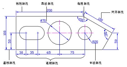 AutoCAD 2008提供了十余種標注工具以標注圖形對象,分別位于“標注”菜單或“標注”工具欄中。使用它們可以進行角度、直徑、半徑、線性、對齊、連續、圓心及基線等標注。