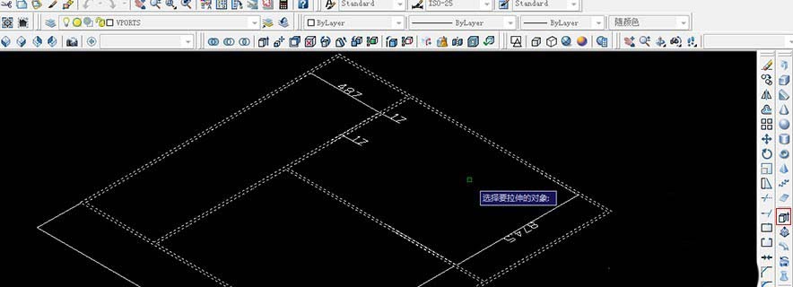 7、選擇等軸測圖,選擇拉伸,框選全部面域,空格,輸入800,空格。