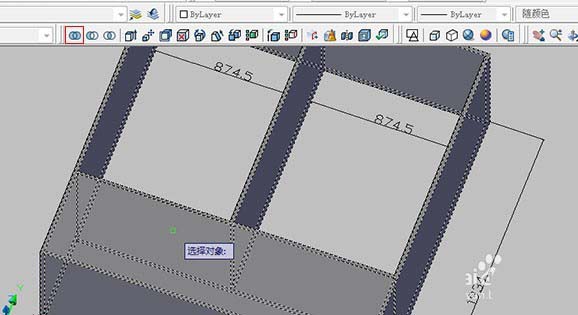 8、切換為實體(概念樣式),選擇差集,先點選大長方體,空格,再選取小長方體,空格,如圖。
