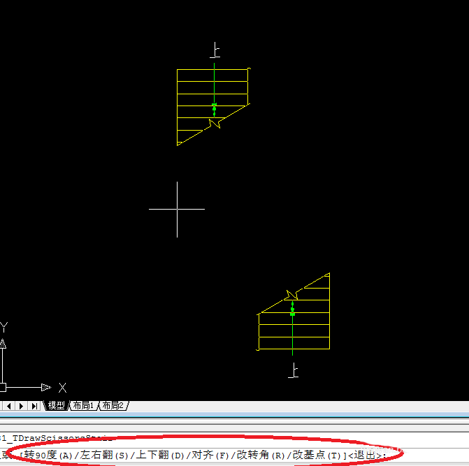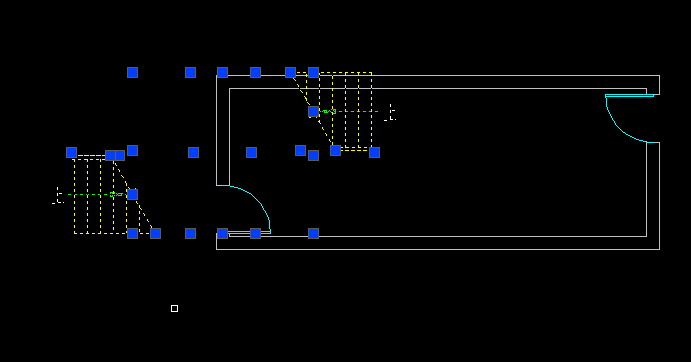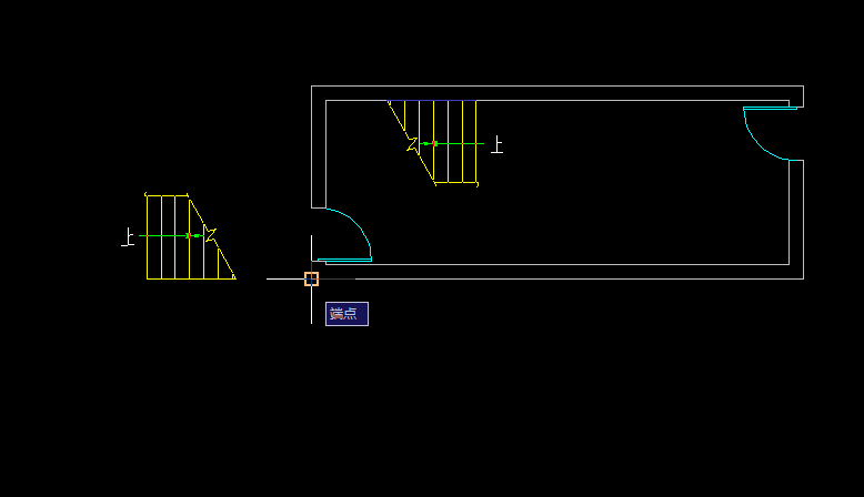 5、根據命令行提示,繪制交叉樓梯;然后點擊選擇交叉樓梯,移動到房間中間位置,如下圖所示