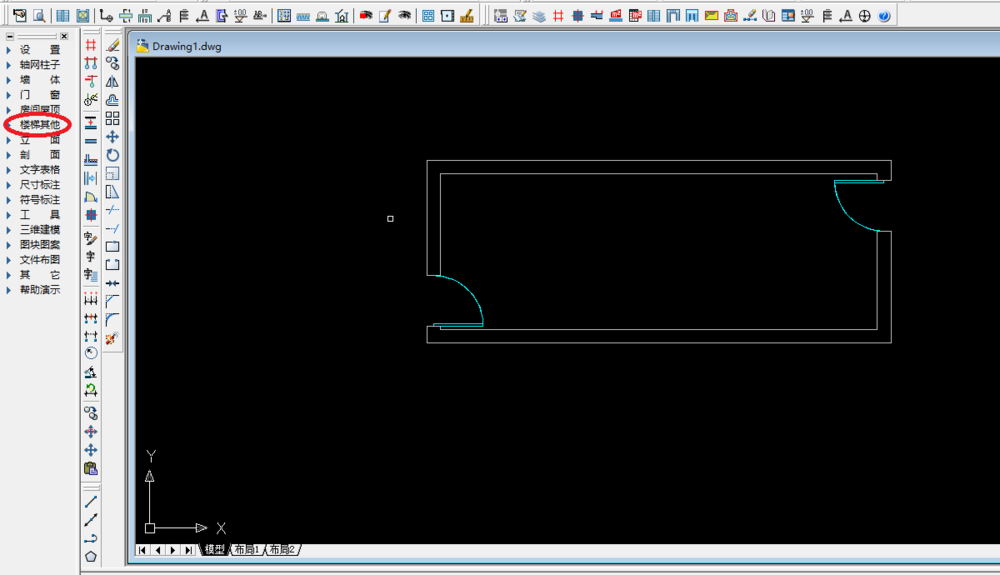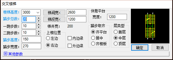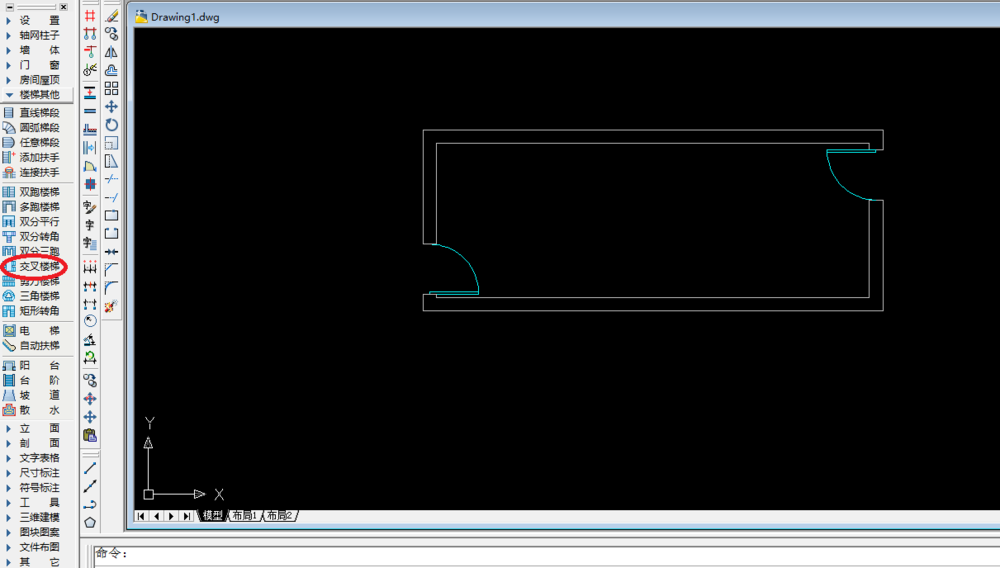 2、點擊“樓梯其他”,然后點擊“交叉樓梯”,如下圖所示