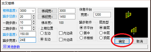 4、在“交叉樓梯”編輯頁面點擊“確定”,如下圖所示