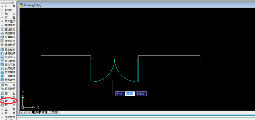 2、點擊“樓梯其他”,然后點擊二次目錄“坡道”,如下圖所示