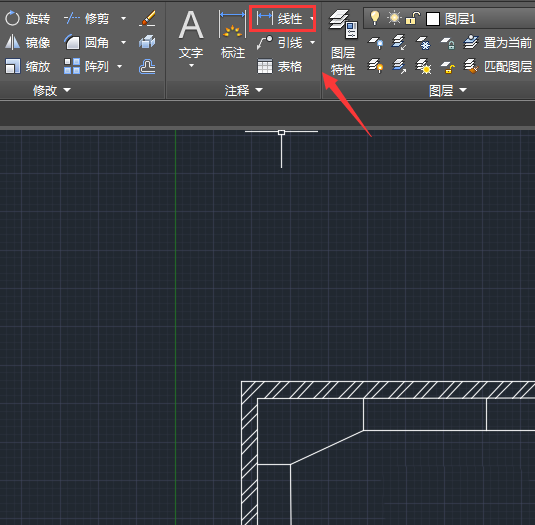 7、再在常用菜單里找到標注選項,在標注里找到線性選項,如圖所示: