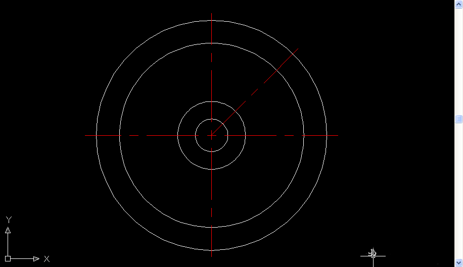 2、利用直線命令,繪制輔助中心線,并將直線的線型設置中center2,顏色為紅色