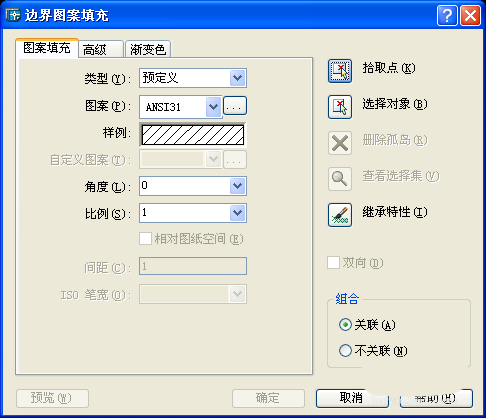 6、使用邊界圖案填充,將輪廓圖設置成截面圖