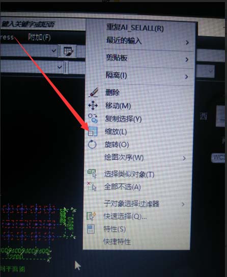4、現在右擊鼠標,在彈出的命令欄點擊【縮放】