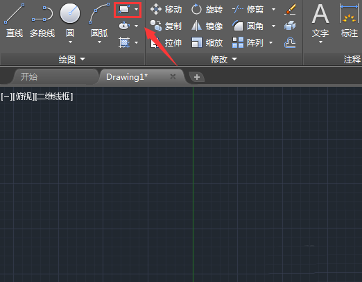 2、選擇矩形我們在繪圖區里畫出一個矩形作為廠房的外輪廓,如圖所示: