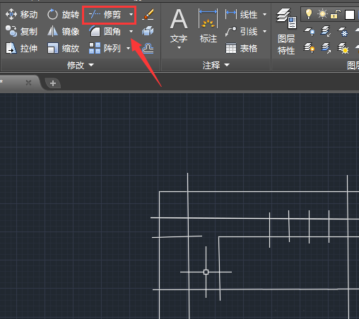 6、選擇修改命令然后將我們繪制的圖形多余的部分全部修剪掉,如圖所示: