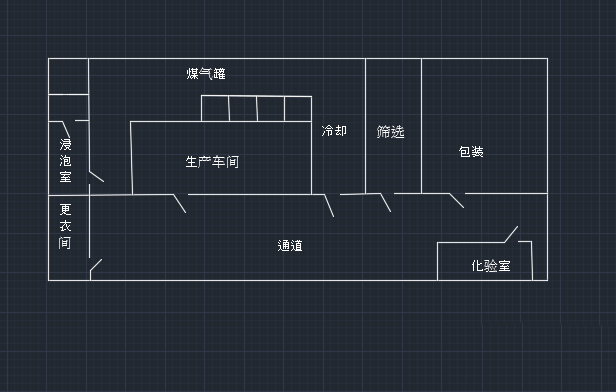 9、選擇文字命令我們依次為車間標注出其用途,這樣我們的廠房就畫好了,如圖所示: