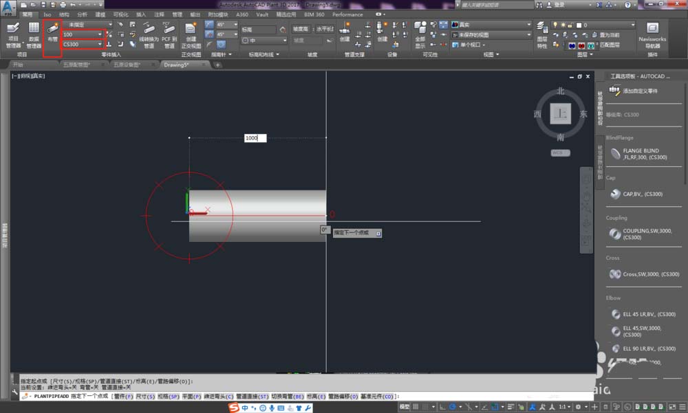 2、點(diǎn)擊常用工具欄>布管,選擇合適的管徑和等級(jí)庫(kù)。(等級(jí)庫(kù)指的是不同材質(zhì)不同標(biāo)準(zhǔn)的管道里面的管道大小、管件、緊固件、閥門等都不同)指定起點(diǎn)就可以布管了,在布管的過(guò)程中可以輸入管道長(zhǎng)度