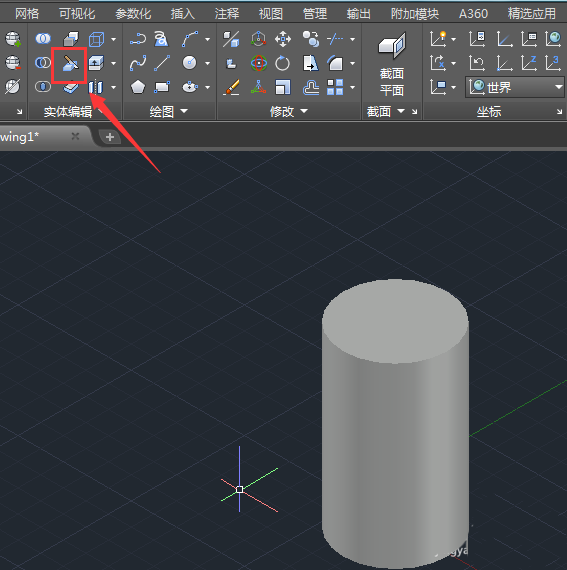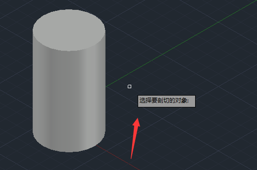 7、選擇剛剛繪制的圓柱體,然后提示我們指定切面的起點,如圖所示: