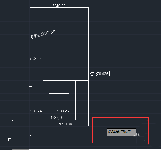 2、根據提示文字,首先選擇基準標注。