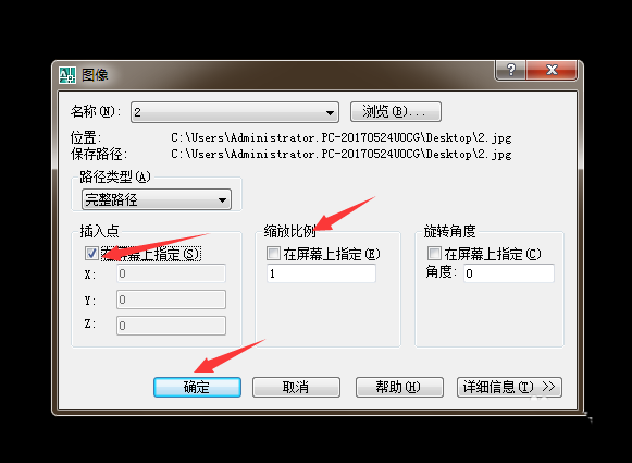 2、選擇你要用的圖片,然后單擊,出現下圖第二張對話框,按照下圖箭頭所示設置,然后確定。