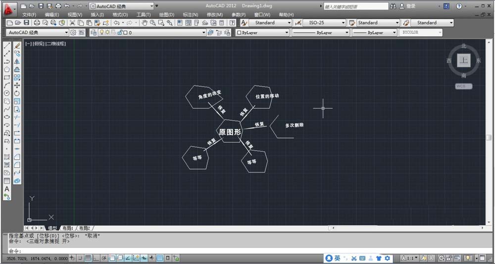 6、假如我們把繪圖區的六邊形(或其它的圖形和命令)進行了多次刪除、移動、修改角度等等,我們都可以把它進行恢復到想要的位置。