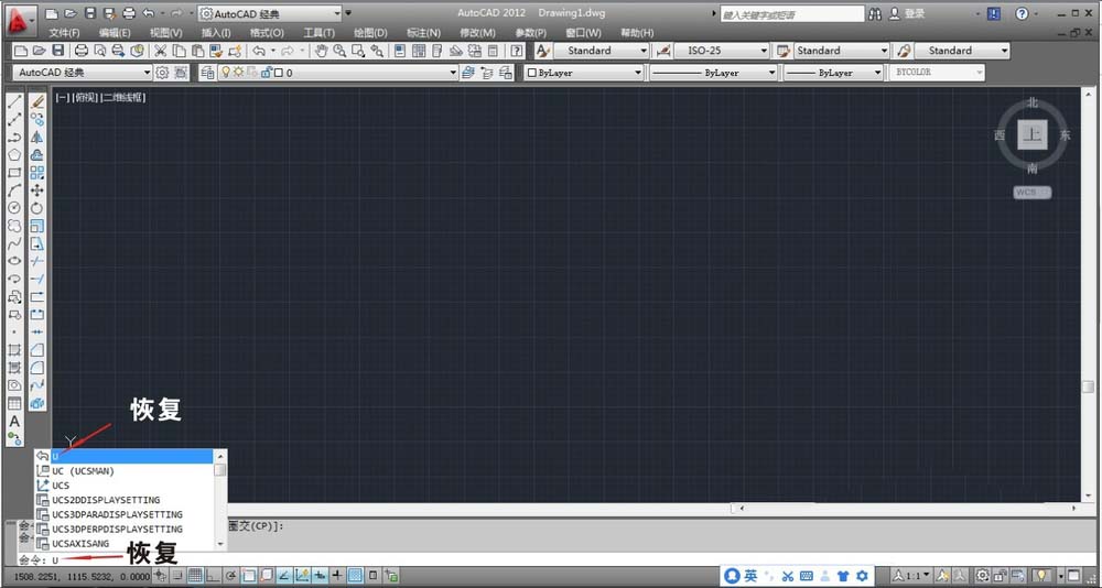 1、恢復的命令功能鍵是U,在命令輸入窗口輸入U后,可以使圖形恢復到上層命令執行之前的狀態。