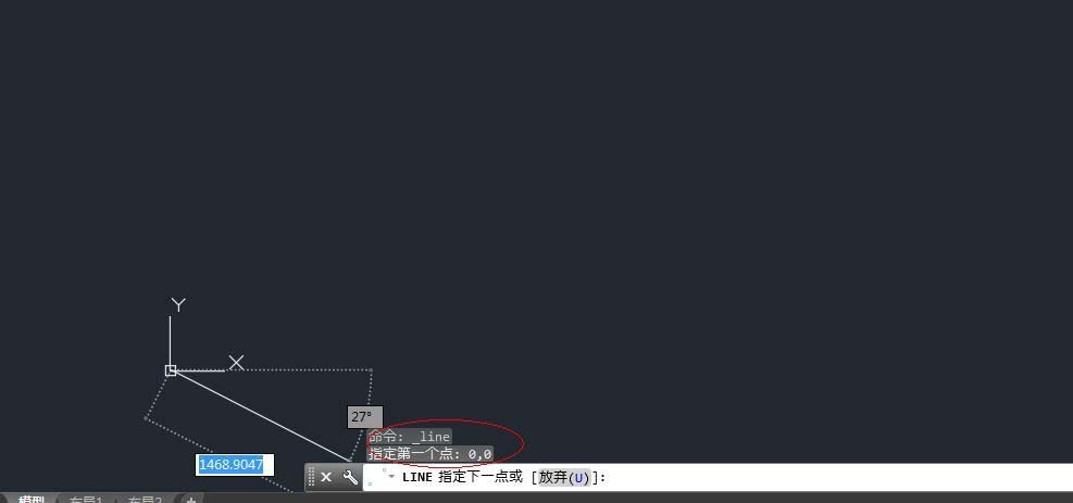 3、在下面的指令欄中輸入0,0表示從坐標原點開始如圖:
