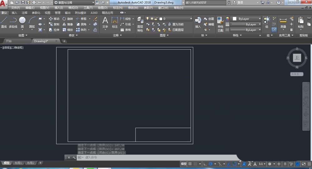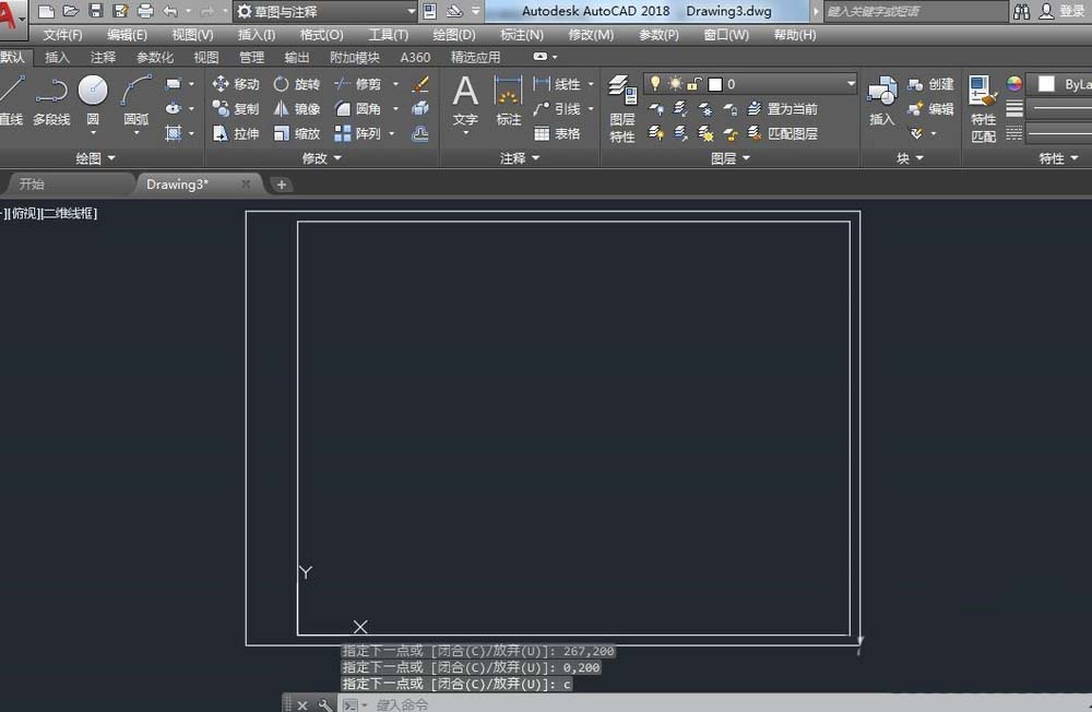 8、步驟和上面一樣,輸入0,0,然后輸入267,0 再輸入267,200,接著0,200 最后c閉合 得到如圖: