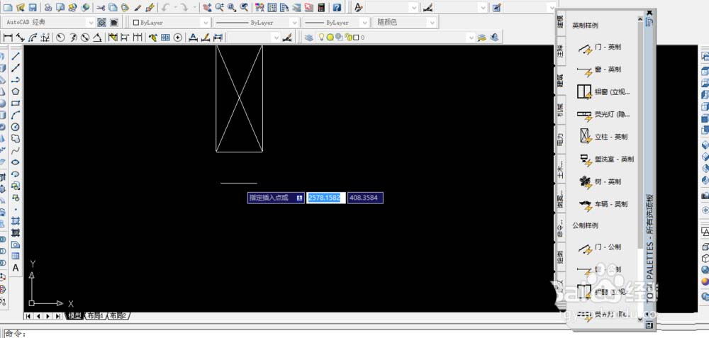 5、選擇熒光燈以后會提示我們指定插入點,我們可以在操作界面指定一個插入點,點擊鼠標左鍵,這樣就會出現熒光燈了
