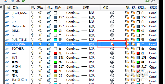 4、在圖層設置界面中把視口方框線的圖層設置不可打印,如圖所示。就可以完成操作。