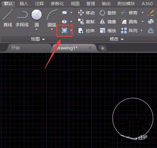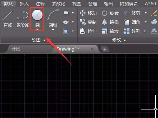 1、首先我們打開CAD這款軟件,然后在打開的界面內找到圓形命令,如圖所示: