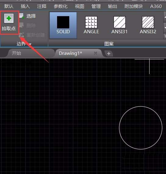 7、點擊拾取點選項之后我們拾取一個圓的內部,就可以填充上該顏色了,然后再設置顏色如圖所示: