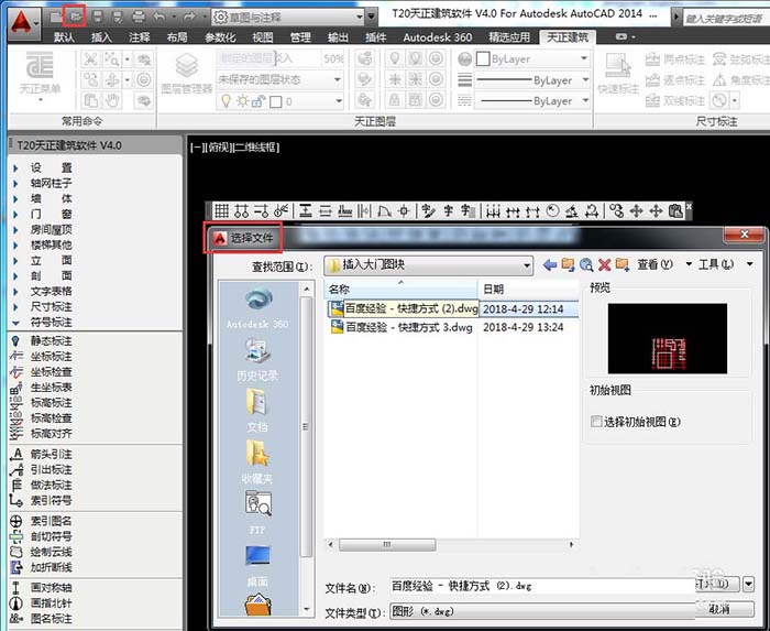 2、然后【選擇文件】對話框載入繪制好的表格文件,點擊【打開】按鈕。