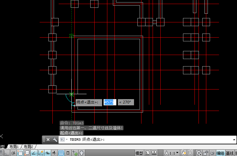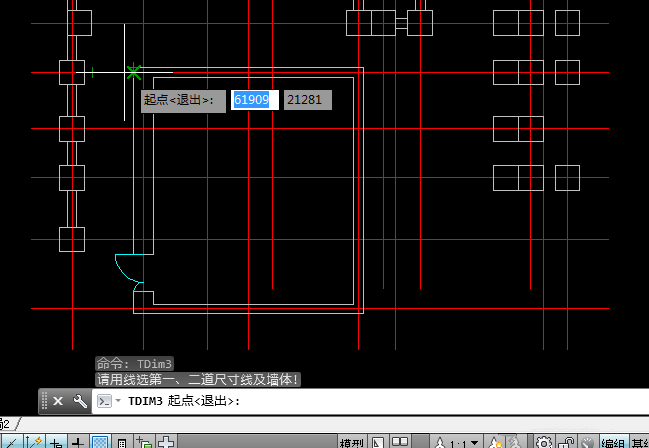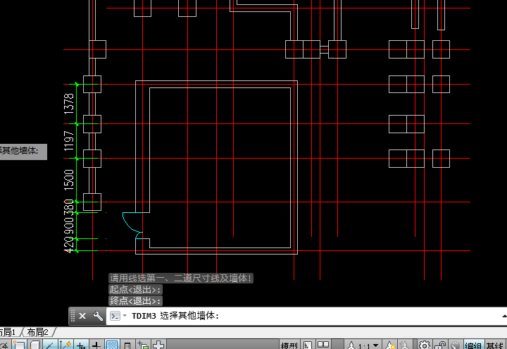 4、點擊【門窗標注】選項后,根據命令提示,單擊外墻任意一點,作為起點,如圖。
