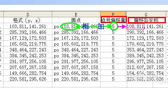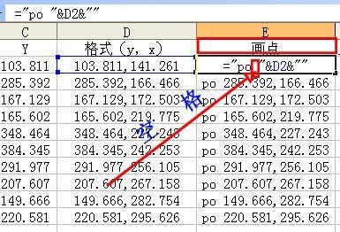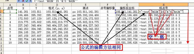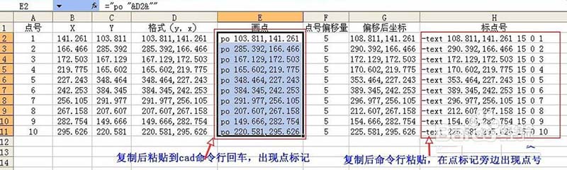 4、下一步:根據已知坐標畫點。編輯畫點數據E列,方法與D列數據處理一樣