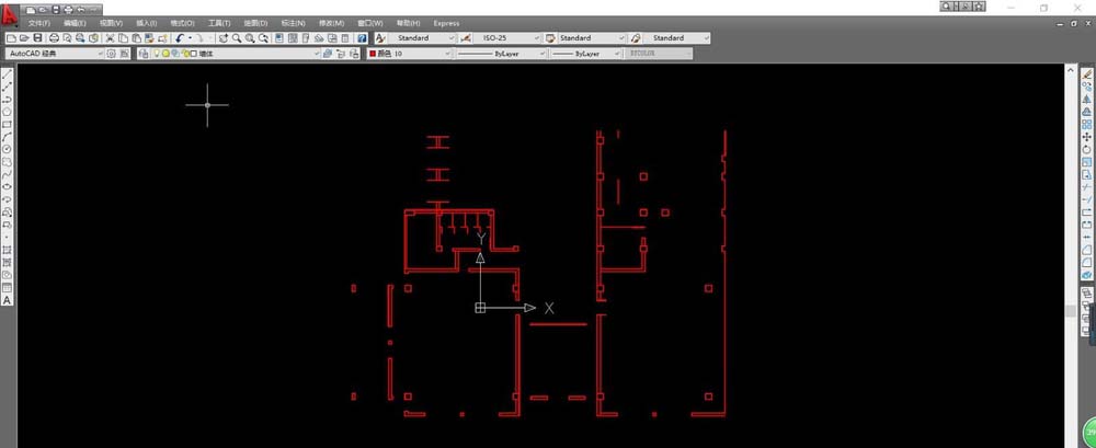 1、打開CAD,把圖畫完;需要強(qiáng)調(diào)的是最好把同一類型的元素放在一個(gè)圖層里,方便改動。