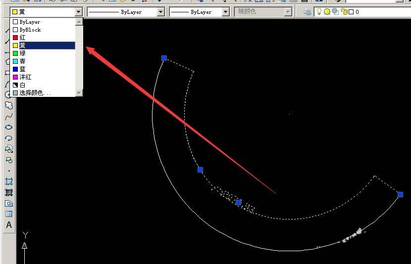 4、鼠標變成小方塊時,點一下弧線