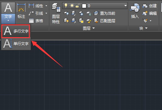 3、點擊文字選項在下拉菜單那里找到多行文字選項,如圖所示: