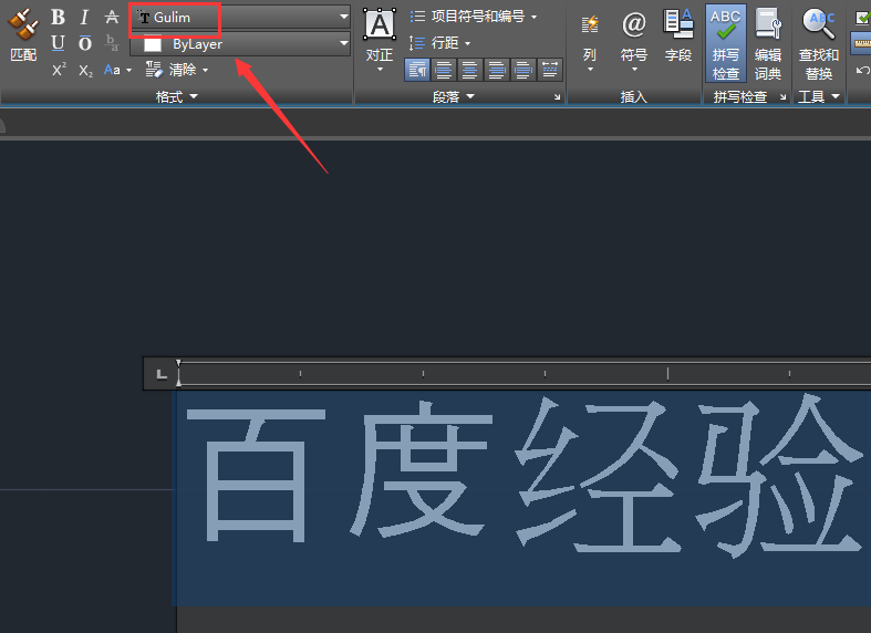 6、選擇剛剛輸入的文字然后在上面找到文字字體選項,如圖所示: