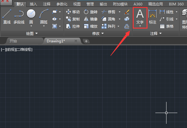 2、打開CAD之后在注釋選項內(nèi)找到文字選項,如圖所示: