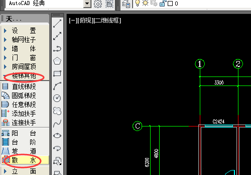 2、然后再左側工具欄中點擊樓梯其他--散水。