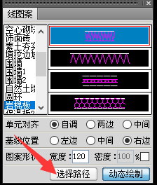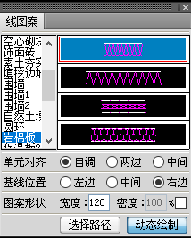 3、單擊線圖案,彈出對(duì)話框,先選擇線圖案類型,這里我們選擇巖棉板,然后,選擇單元對(duì)齊和基線對(duì)齊方式,設(shè)置圖案寬度,最后,鼠標(biāo)移動(dòng)到繪圖區(qū)繪制。