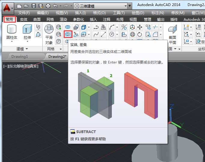 CAD畫圖如何使用差集命令?CAD計算立方體面域和實體的差集的方法