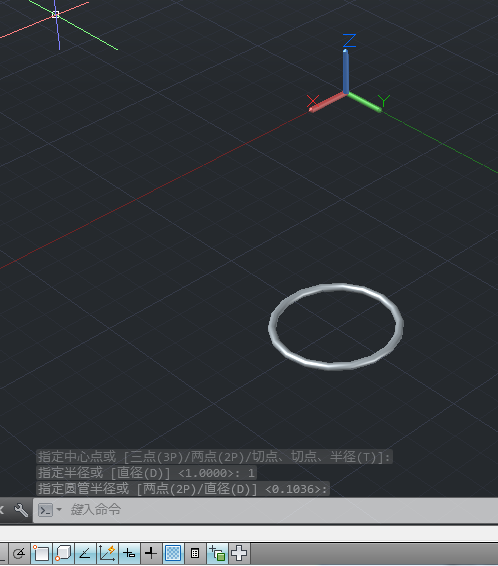 6、指定完圓管的半徑后,單擊鼠標左鍵,即可完成圓環的繪制,最終效果如圖。