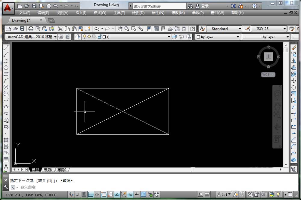 2、在矩形內(nèi)畫(huà)出對(duì)角線;