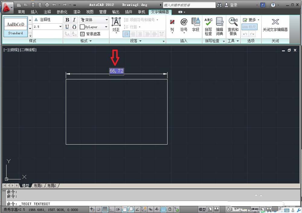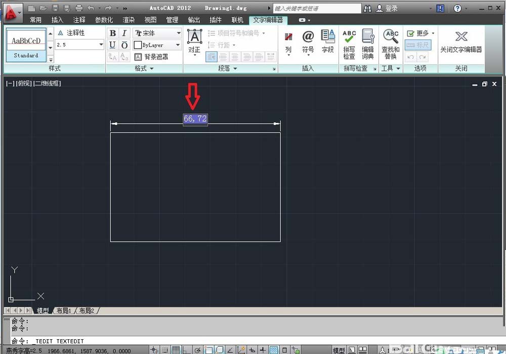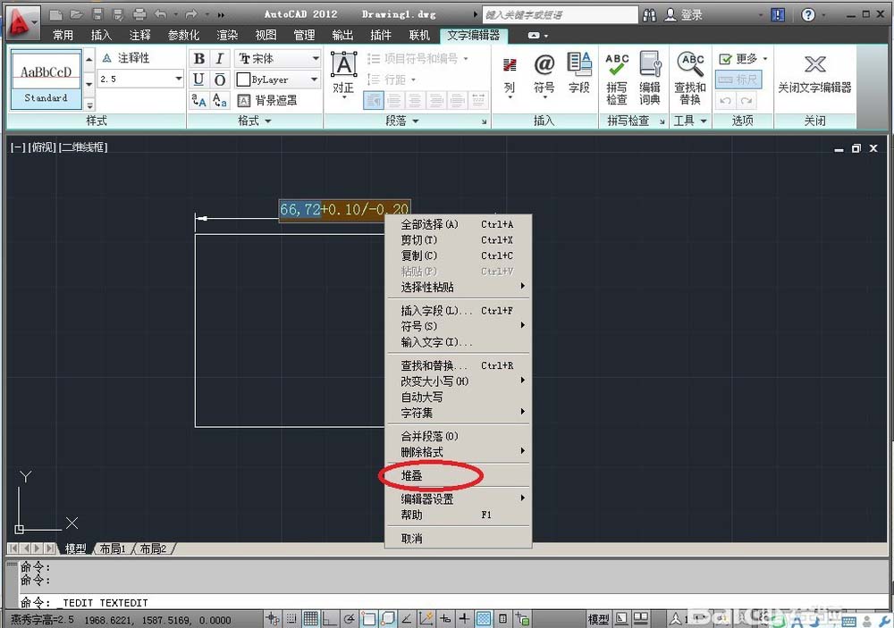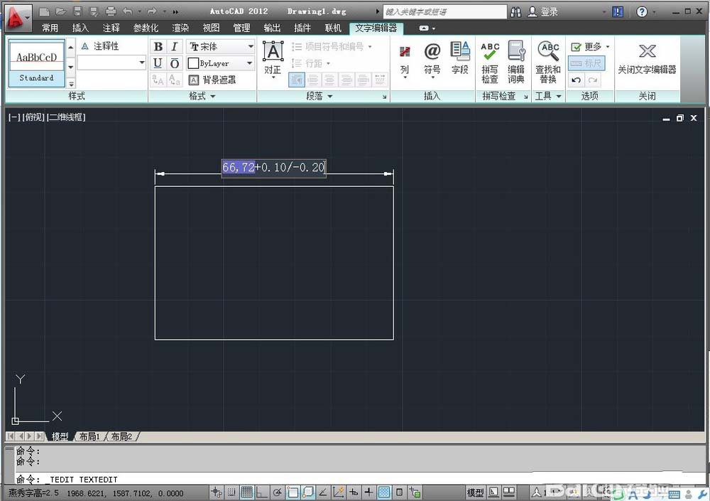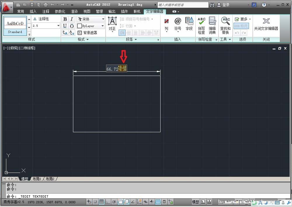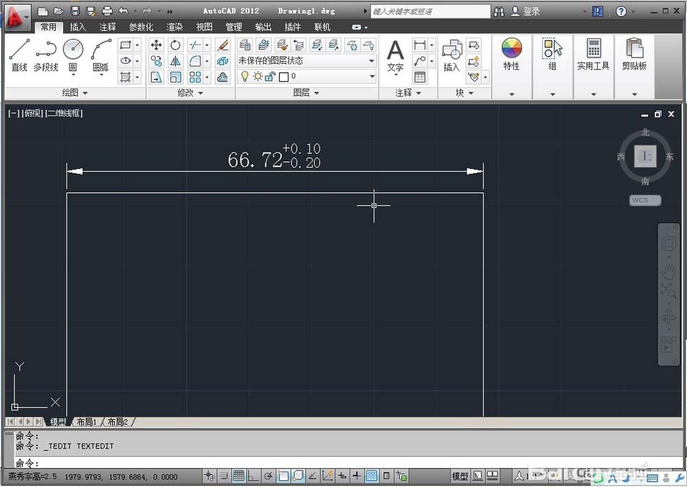 1、打開一個CAD文檔,現在我要將尺寸66.72標注成+0.10,-0.20的公差來。