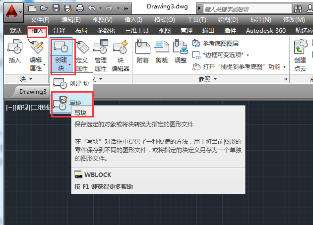 1、外部圖塊不依賴于當前圖形,它可以在任意圖形中調(diào)入并插入,其實就是將這些圖形變成一個新的、獨立的圖形。在菜單欄依次選擇【插入】》【塊定義】》【寫塊】選項。