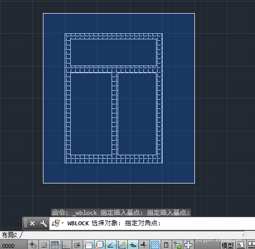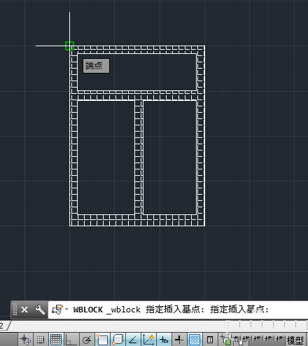 5、在菜單欄依次通過【插入】》【塊定義】》【寫塊】選項,打開寫塊對話框,單擊【基點】選項組中的【拾取點】按鈕,在繪圖區(qū)域中指定窗戶圖形的圖塊基點。