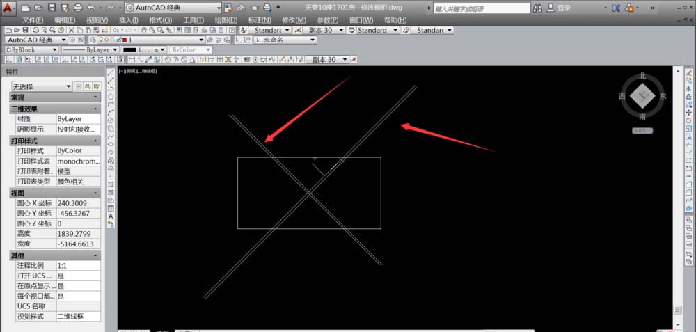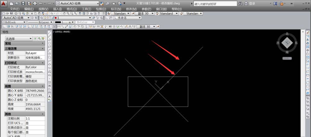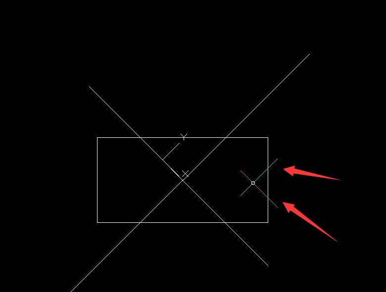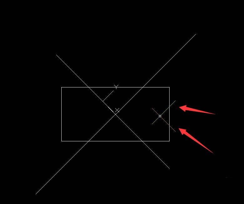 3、然后以將兩條中心線,以交接點(diǎn),旋轉(zhuǎn)(快捷鍵RO)45°。如下圖