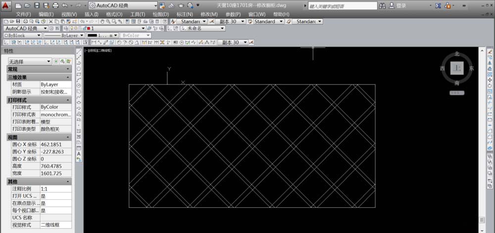 7、然后左邊的斜線也一樣復(fù)制,再將所以的線,(以內(nèi)空為100*100)復(fù)制整個(gè)框內(nèi)。如下圖。在復(fù)制所的線時(shí),鼠標(biāo)“管理用戶坐標(biāo)”依舊要保持45°角。復(fù)制數(shù)據(jù)填寫(xiě)118。