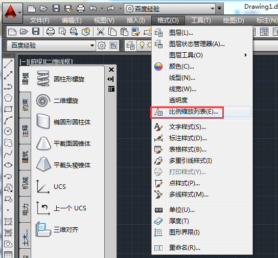 2、在菜單欄中選擇【格式】菜單,在彈出的下拉列表中選擇【比例縮放列表】選項。