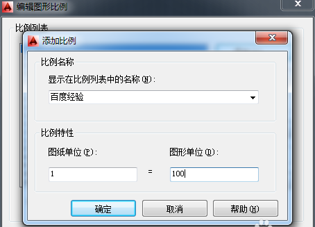 3、彈出【編輯圖形比例】對話框的【比例列表】中選擇所需比例值,單擊“確定”按鈕即可。