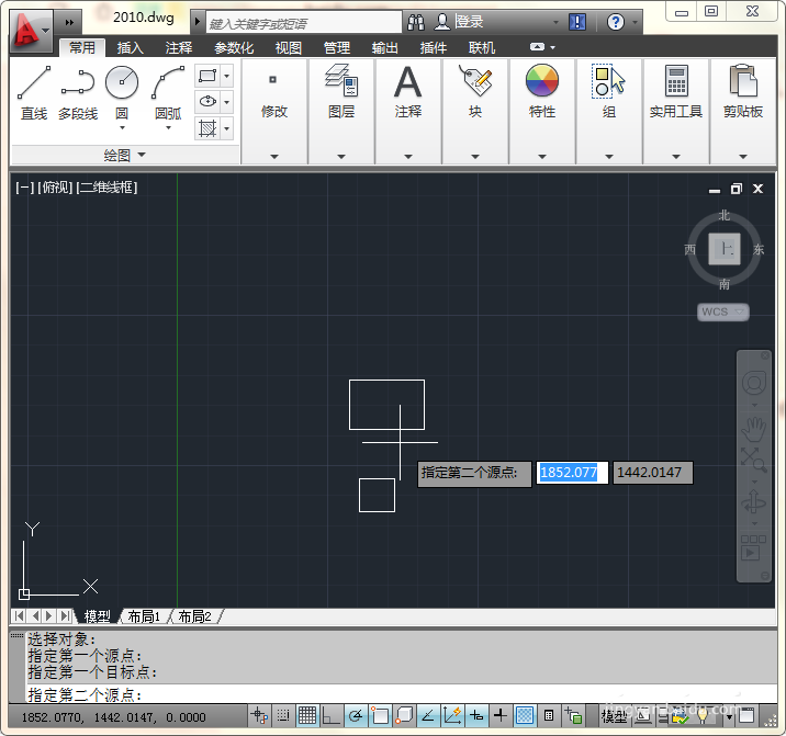 5、然后指定第一個目標點,就選擇下面長方形的某一個點,這里就選擇左邊端點往里一點。